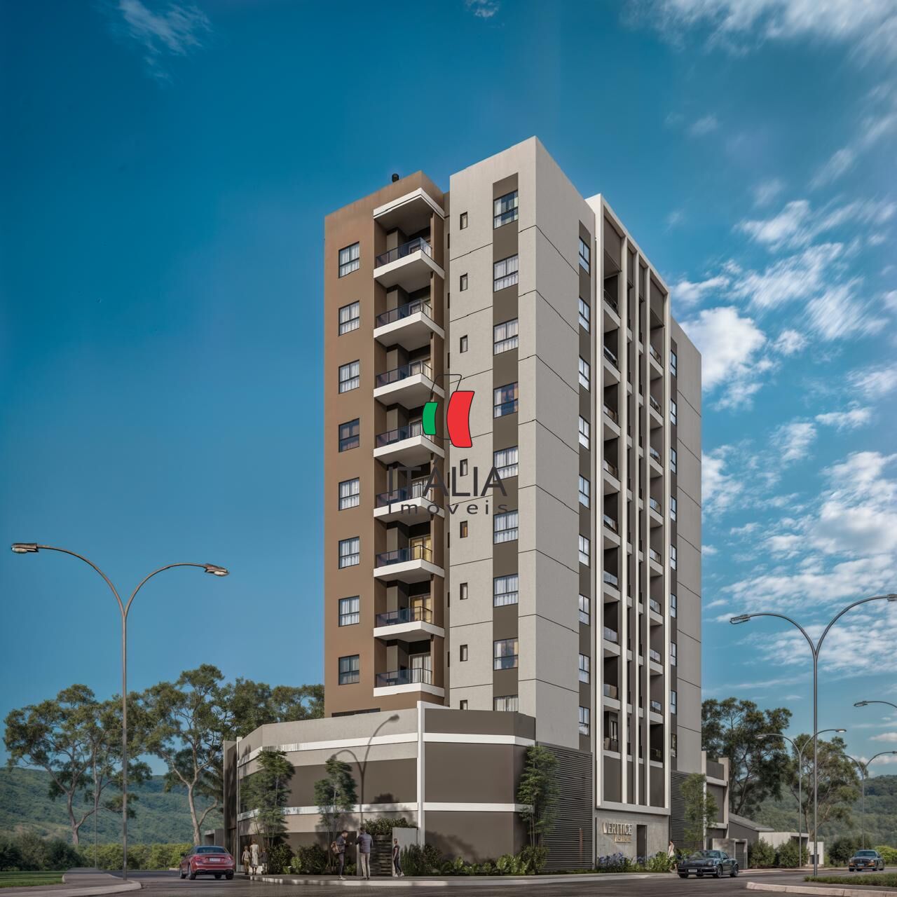 - Apartamentos de 1 suíte + 1 quarto, sala e cozinha conjugados, 2 banheiros, sacada com churrasqueira e 1 vaga de garagem.