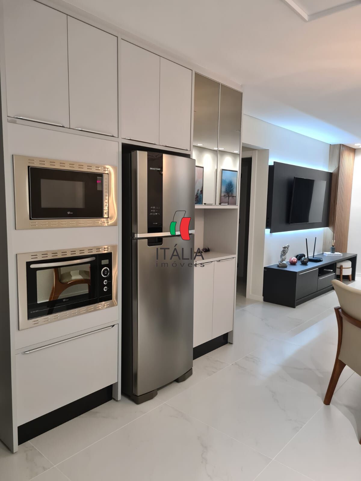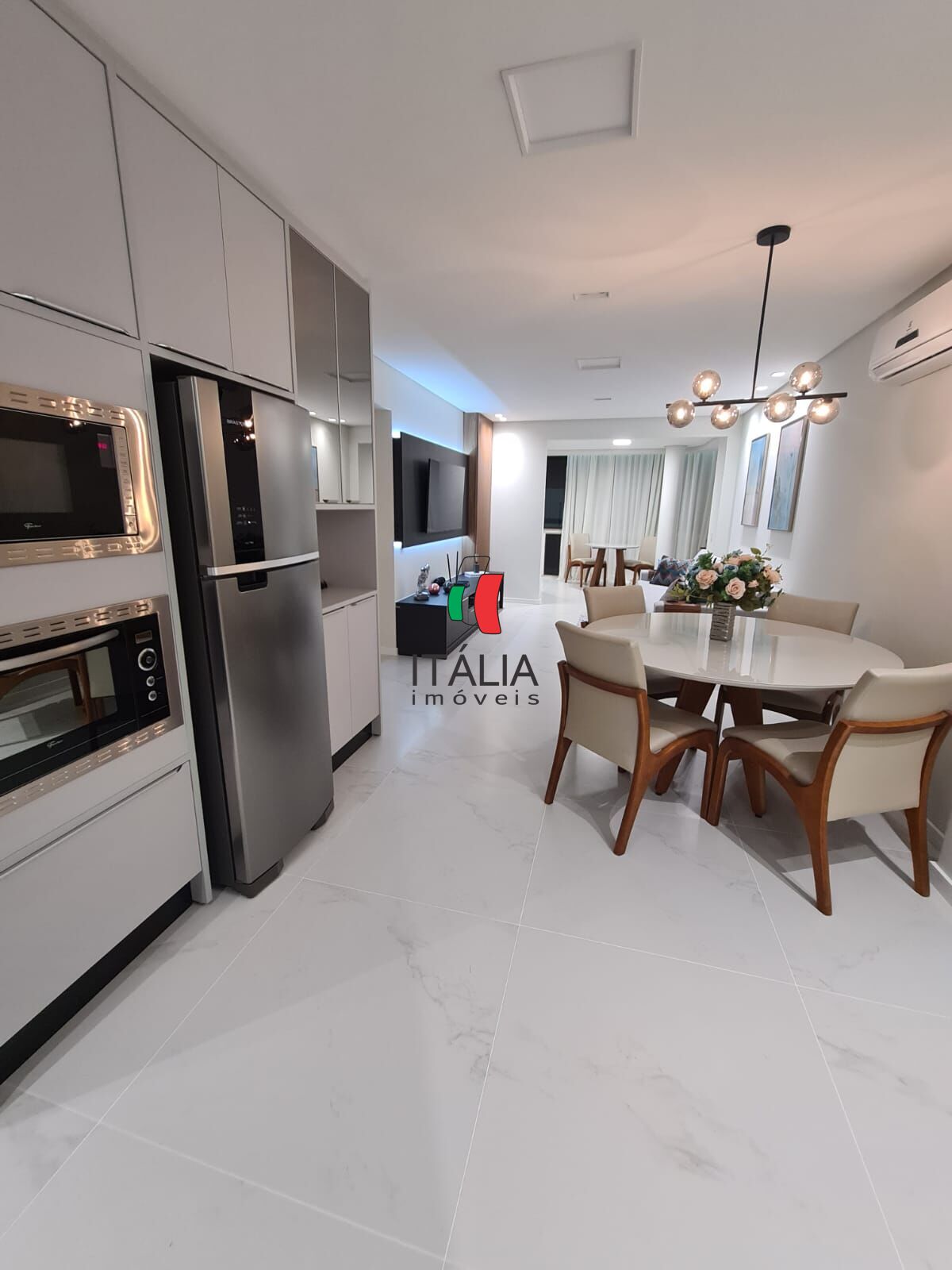 Todos os cômodos com móveis sob medida, ar-condicionado nos quartos e na sala de estar/jantar.