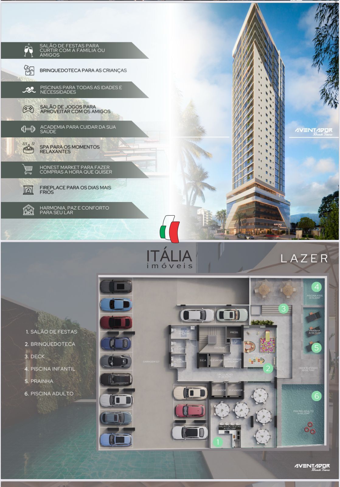 - Infraestrutura de lazer completa (piscina, academia, salão de festas, etc.)