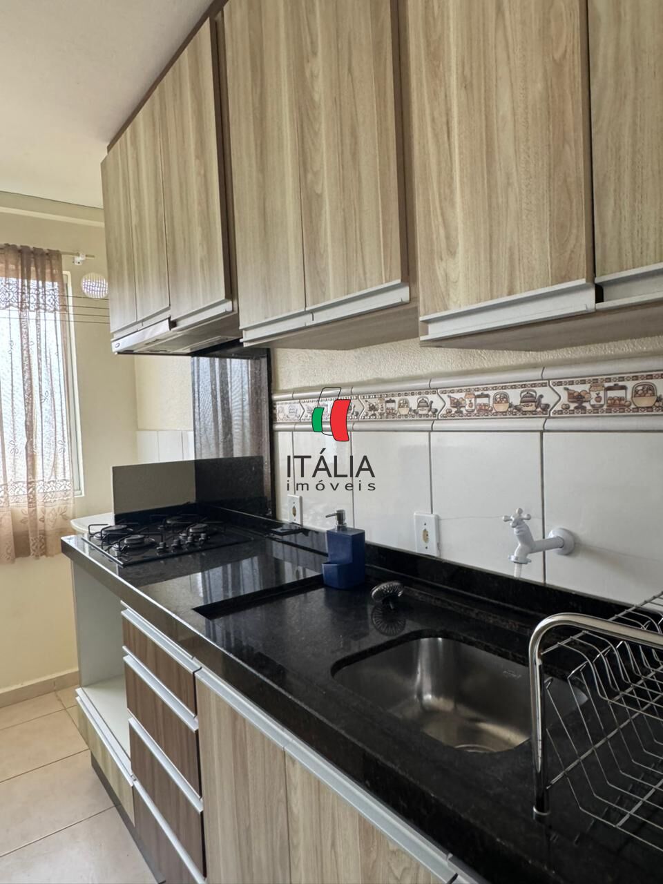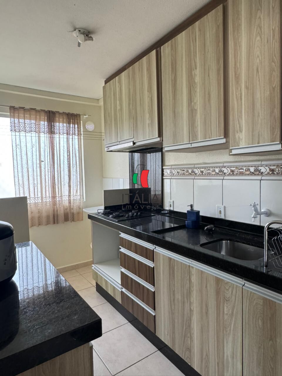 O apartamento já conta com mobília planejada, incluindo armários e itens essenciais, proporcionando praticidade e organização.