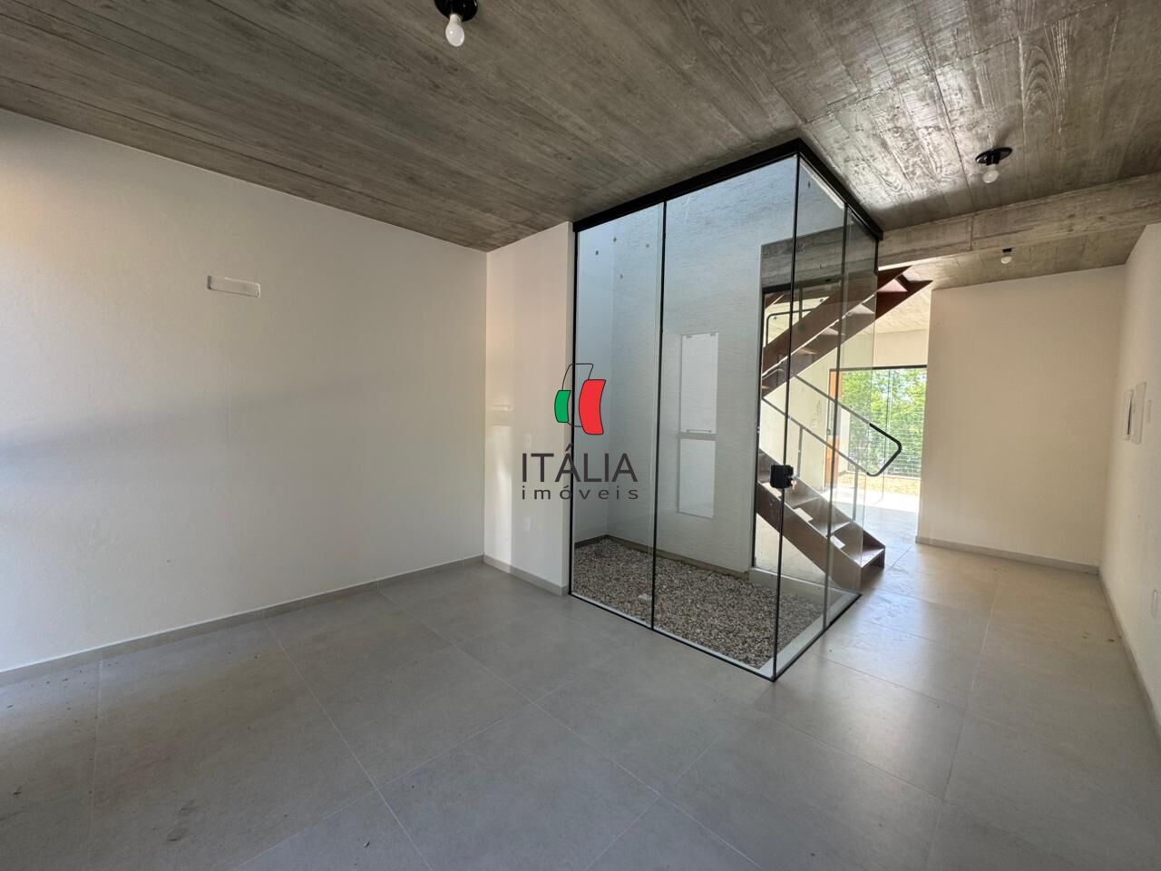 Possui acabamento moderno, ambientes bem distribuídos e excelente iluminação natural. Destaque para a escada em madeira, que valoriza o projeto arquitetônico.